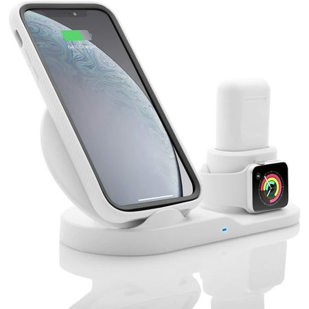 Description: FAST CHARGING: 3 in 1 Fast wireless charger has upgraded chip supporting fast charging. Advanced technology detects your device delivering fast charging 10W for Samsung & 7.5W for iPhone.For all other Qi-enabled wireless charger devices QC ADAPTOR REQUIRED (Not included). High quality QC3.0 adapter(9V/2A) is recommended. CABLE-FREE CHARGING: No need any other charging cables. Simply plug the cable into a wall charger / power bank or any other USB charging devices and put your devices on it then charging is on the go! It is Say Goodbye to Wires Mess Keep your desk and nightstand tidy and neatly. WIDELY COMPATIBILITY: No need to connect three cables for each device anymore use our wireless charging stand to charge your iWatch 1/2/3/4/5 and Airpods Pro/1/2 and any Qi-certified devices at once! Such as iPhone 11 11 Pro X XS XR Xs Max 8 8 Plus; Samsung Galaxy S10 S10 Plus S9 S9 Plus S8 S8 Plus S7 S7 Edge S6 Edge Plus Note 9 Note 8 etc. Our charging station for apple products is the best solution to organize your workspace. ADVANCED SAFETY PROTECTION: Special multi-protect technology provides temperature control surge protection short-circuit prevention over discharge protection to protect your charging devices. The wireless charging stand supports charging the phones even through the phone case. However you need to remove metal and magnetic objects like credit cards and other such objects that can cause hindrance in charging signals.3 IN 1 CHARGING STATION FOR OFFICE VERTICAL & HORIZONTAL CHARGING Enough charging space allows you to charge in portrait and landscape mode providing you with a comfortable viewing angle to watch videos listen to music Face Time send messages and unlock your phone with Face ID while charging. MINIMAL SPACE AND DURABLE CHARGER The Wireless Charging Station is designed for charging your Apple Watch AirPods and iPhone at one place keep your desk tidy and neatly just enjoy your leisure time at home. What you get 3 in 1 wireless charging station *1 USB Cable *1 User manual *1
