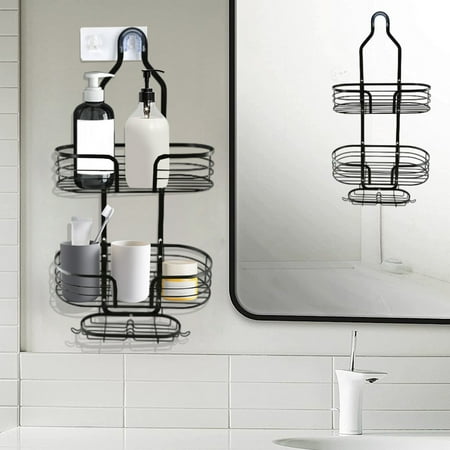 3-Tier Over The Shower Head Organizer | Hanging Shower Caddy with Soap Rack & Towel Hooks | Stainless Steel Bathroom Storage Shelf for Shampoo Feature: Quantity: 1Pcs Colour:Black Material: stainless steels Product size: 63×29.5x16cm/24.8×11.61×6.3in Package size:33x14x10cm/12.99×5.51×3.94in weight:900g/1.98lb Gross weight:1000g/2.2lb Product Description: VERSATILE SHOWER STORAGE SOLUTION: This hanging shower caddy features 3 spacious shelves and Comes with hooks. IDEALS for organizing a variety of bathroom products like shampoo conditioner body wash and shower gels. STABLE MOUNTING DESIGN: The rubber shower head is clamped to the shower pipe and then the shower bracket is fixed with adhesive to ensure that the shower caddy hanging can be firmly adhered to the wall providing a stable environment for you to use. MATERIAL: Made from yet stainless steels this over the shower head caddy combines strength. MULTI-FUNCTIONAL DESIGN: the height and spacing of the shower organizer hanging adapt to different sizes of bottles making it easy for you to flexibly place items according to your needs; whether it s shampoo conditioner or soap shower accessories can be easily stored; practical hook for hanging your shavers. loofahs towels etc to meet all of your shower storage needs. EASY INSTALLATION: Our bathroom shelves for shower are designed to be easy to use no additional tools and skills required allowing you to complete the installation easily and quickly saving and effort. Package Content: 1* Bathroom Shower Hanging Rack.