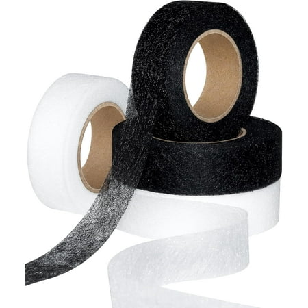 4 Rolls Iron on Hem Tape Light and Medium Weight Adhesive Web,No Sewing Required Fabric Fusing Hemming Tape for Pants Clothes Curtains 1 Inch x 22 Yards Each (White&Black)