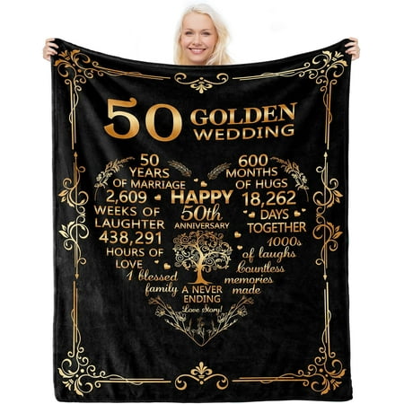 50th Anniversary Blanket Gifts Best Gift for 50th Wedding Anniversary Golden 50 Years of Marriage Gifts for Couple Husband Parents Happy Anniversary Decorations Presents for Dad Mom Grandparents