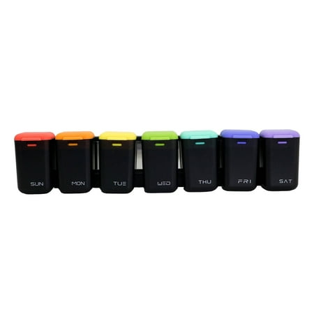 ABS+TPR storage organizer (31x8x5.3cm 280g). Lid design durable. Daily schedule management indoor use. Compact fits supplements/food. Promotes health organization easy access.