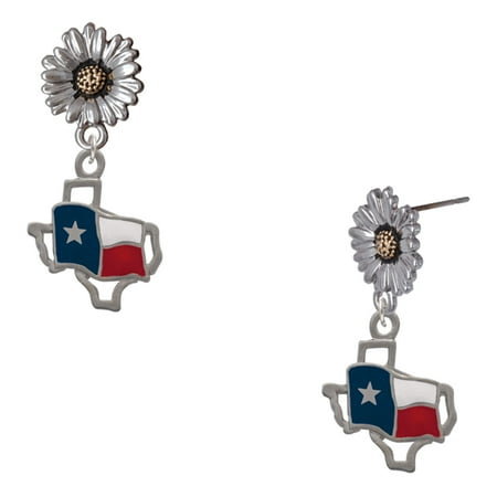 Imitation Rhodium Plated Texas Outline with Flag – Two-tone Daisy Flower Post Earrings. Charm size is approx. 0.78 x 0.65 x 0.11 inches (HxWxD) including loop. Elevate your accessory collection with these charming Silvertone and Goldtone Daisy Flower post earrings. Measuring 0.51 inches across they offer a delicate yet eye-catching design that complements any outfit. Crafted with a sturdy steel post and a plastic comfort ear clutch these earrings ensure a secure and comfortable fit for all-day wear. Discover the charm of our Daisy earrings which embodies the timeless beauty and cheerful spirit of these beloved flowers. Our earrings celebrate the delicate petals and vibrant colors that symbolize purity and innocence. Embrace the joy and positivity that daisies represent and elevate your wardrobe with these enchanting earrings today. Our jewelry is meticulously hand assembled in the USA ensuring exceptional quality and craftsmanship. Each piece is created using carefully sourced imported components resulting in unique designs that reflect both elegance and artistry. Perfect for any occasion our collection offers a blend of sophistication and individuality making it a cherished addition to your accessory wardrobe. PLEASE NOTE: Our products are not intended for children 14 years and younger.