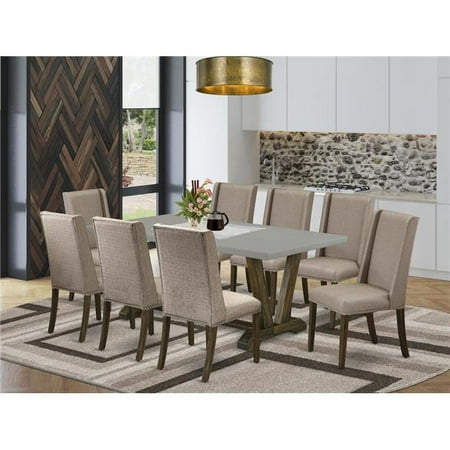 This dining set includes 8 awesome parson chairs and a great X-leg small rectangular table. The modern dining set gives a Linen White hardwood dining room table and body and an awesome Shitake parson chairs seat and high back that bring magnificence to your dining-room and increase the charm of your wonderful living area. The high quality of our stunning chairs helps our beautiful customers to get relaxation and feel free when getting their meal. This wood dining table created from high quality rubber wood which can bear the weight of 300 Lbs. Our dining room chairs have a wooden frame with a luxury seat of high quality foam which is covered with Linen Fabric that gives you relaxation with family or friends. This listing has a premium color of Linen White finish for kitchen dining table and Shitake finish of parson chairs. Our amazing premium colors increase the beauty of your living area and give a luxurious look to your living area or dining area. East West furniture usually constructed from modern furniture along with easy assembling parts. We try to keep our furniture parts innovative as well as simple. Our high class dinette set is great for your amazing living area as well as the kitchen. You can use it for casual home parties. Keep enjoying East West modern furniture! Features V-Style Rectangular Dining Table Set – Dark Khaki 9 PieceIncludes 8 gorgeous parson chairs and a beautiful dinette tableSpecifications Collection: V-Style Fabric Color: Dark Khaki Fabric Material: Linen Fabric Table Dimension: 30 H x 40 W x 72 L Chair Dimension: 41 H x 19 W x 25 L Weight: 359 lbs – SKU: EWF10526