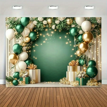 Elegant Green Golden Themed Backdrop Luxurious Green Balloons Floral Photography Background for Women Green Birthday Decorations Supplies