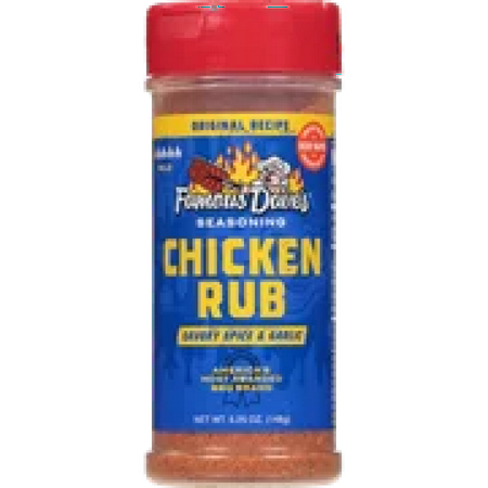 The secret to the perfect bird starts with how you prep it. Famous Dave s Chicken Rub 5.25 ounce seasoning has a delicious blend of paprika peppers tomatoes and spices. This shelf-stable rub adds a sweet and savory punch to your poultry and is specially crafted to enhance the flavor.