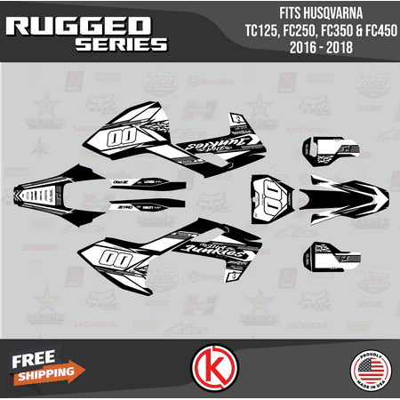 *** WE OFFER FREE CUSTOM RIDER NAME & NUMBER *** Your custom name & number must be provided during checkout under “message to seller” or through Walmart messaging immediately after placing the order. Otherwise graphics as shown in the listing are shipped. Fits Husqvarna TC125 TC250 FC350 and FC450 (2016-2018) OEM or OEM-replica plastics. The complete graphics kit includes all the pieces shown in the listing. Plastics are NOT included. Thicknesses for durability against scratches and falls: 9 Mil – for light use 16 Mil – high durability 21 Mil – max durability Market-leading designs printed on triple-layered vinyl with a glossy UV protective layer and ultra-aggressive adhesive specifically engineered for motocross and ATVs Precision cut ready to install All materials including vinyl and laminate are made in the USA