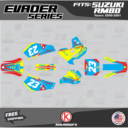 *** WE OFFER FREE CUSTOM RIDER NAME & NUMBER *** Your custom name & number must be provided after checkout under “Contact seller” or through Walmart messaging immediately after placing the order. Otherwise graphics as shown in the listing are shipped. Fits Suzuki RM80 (2000-2001) OEM or OEM-replica plastics. The complete graphics kit includes all the pieces shown in the listing. Plastics are NOT included. Thicknesses for durability against scratches and falls: 9 Mil – for light use 16 Mil – high durability 21 Mil – max durability Market-leading designs printed on triple-layered vinyl with a glossy UV protective layer and ultra-aggressive adhesive specifically engineered for motocross and ATVs Precision cut ready to install All materials including vinyl and laminate are made in the USA