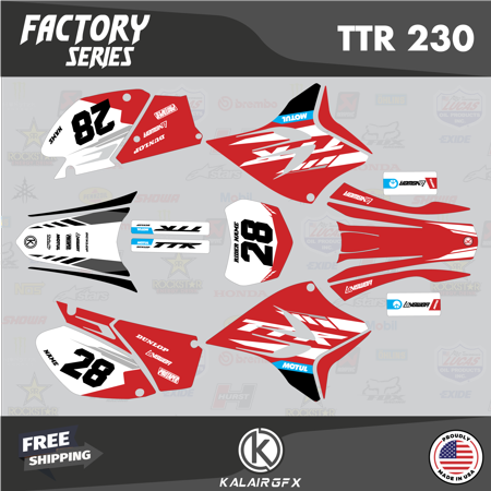 *** WE OFFER FREE CUSTOM RIDER NAME & NUMBER *** Your custom name & number must be provided during checkout under “message to seller” or through Walmart messaging immediately after placing the order. Otherwise graphics as shown in the listing are shipped. Fits Yamaha TT-R230 (2005-2023) OEM or OEM-replica plastics. The complete graphics kit includes all the pieces shown in the listing. Plastics are NOT included. Thicknesses for durability against scratches and falls: 9 Mil – for light use 16 Mil – high durability 21 Mil – max durability Market-leading designs printed on triple-layered vinyl with a glossy UV protective layer and ultra-aggressive adhesive specifically engineered for motocross and ATVs Precision cut ready to install All materials including vinyl and laminate are made in the USA
