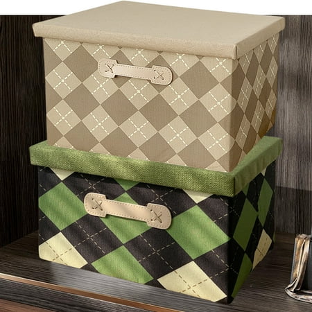 Kuroiy Fabric Stackable Large Capacity Drawer Storage Box | Khaki or Green Cloth Organizer | 14.96×9.84×7.09 in | Foldable Space Saver | Closet Shelf Home Car Use | Secure Lid The Fabric Stackable Large Capacity Drawer Wardrobe Storage Box is a practical solution for organizing clothing toys accessories and more. Made from durable breathable fabric it offers long-lasting quality with a soft stylish appearance. Measuring 38x25x18 cm (14.96×9.84×7.09 inches) when unfolded it provides ample space for various household items while its foldable design allows it to be compactly stored at 25x18x5 cm (9.84×7.09×1.97 inches) when not in use. The box features a secure lid that keeps contents clean and enhances organization. Suitable for use in homes or cars this versatile storage solution helps maintain tidy closets shelves and living spaces. Each package includes one spacious foldable storage box with a lid combining functionality with aesthetic appeal for efficient home management.
