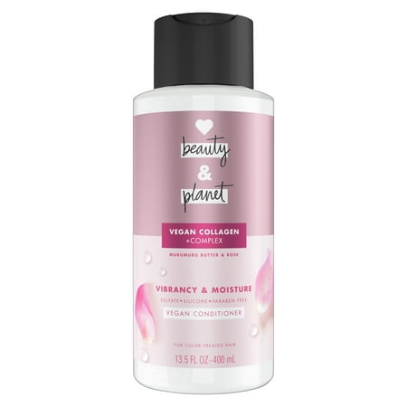 Love Beauty and Planet Vegan Collagen Moisture Conditioner for Women Murumuru Butter & Rose 13.5 oz. Get 3X softer healthier-looking color-treated hair with Love Beauty and Planet s Murumuru Butter & Rose Vibrancy & Moisture shampoo and conditioner! This moisturizing blend with Amazonian Murumuru Butter and our Vegan Collagen +Complex with natural bond-strengthening actives and coconut oil adds weightless hydration to dry color-treated hair while giving a boost of healthy-looking vibrancy softness and shine!Like all Love Beauty and Planet hair products made with clean ingredients it s PETA-certified cruelty-free and vegan sulfate-free silicone-free paraben-free dye-free and formulated without phthalates and microplastics. Plus this conditioner formula is 97% naturally derived 100% biodegradable and packaged in a 100% recycled bottle. For adult use.