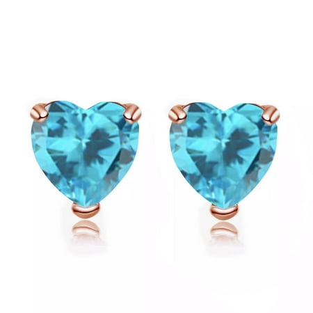 Elevate your style with these stunning 14k rose gold-plated stud earrings featuring a pair of 2 carat heart-shaped blue topaz stones. Crafted with a prong setting and push-back closure these earrings offer a sophisticated and elegant look that will complement any outfit. Designed in France these earrings are the perfect accessory to add a touch of glamour to your everyday look. With their timeless design and high-quality craftsmanship these earrings are sure to become a cherished piece in your jewelry collection.