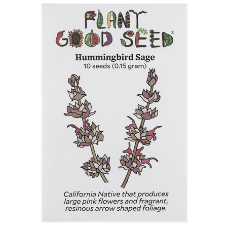 Hummingbird Sage is a California Native that produces large pink flowers and fragrant resinous arrow shaped foliage. Seeds are certified organic. At Plant Good Seed we are in the business of life. All our seeds are untreated and not genetically modified (non-GMO). All our seeds are germination tested for viability to ensure you have a high quality growing experience.