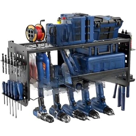 [Industrial 1.5mm Steel Frame]Cold-rolled steel construction supports 50 lbs per tier-holds heavy drills saws or toolboxes without bending. Built for daily use in garages or workshops. [Ventilated Grid Fights Moisture & Rust]Open-grid design promotes airflow to reduce humidity buildup-protects metal tools from corrosion in damp spaces like basements or garages. [10-Minute No-Drill Wall Mount]Pre-drilled holes + included hardware enable tool-free installation. Mounts vertically to free up floor space-ideal for compact workshops. [Custom Holders: Drills Hammers Screwdrivers]Dedicated slots keep tools visible and accessible. Never dig through messy piles again-perfect for DIYers and mechanics. [Maximize Cluttered Garage Space]Slim profile stores 3x more than floor storage. Transform chaotic corners into efficient work zones-ideal for pegboard alternatives.