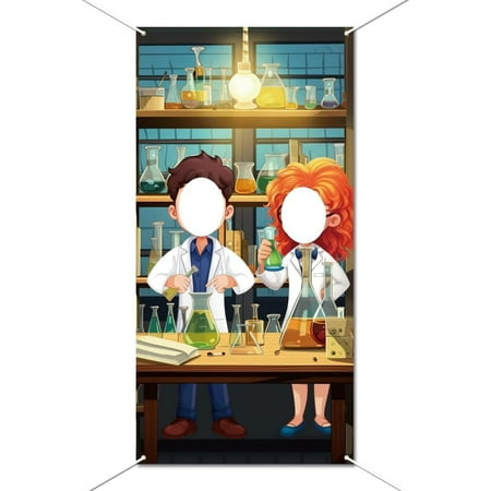 Scientists Doing Experiments Photo Banner Science Theme Funny Face Background Science Photography Backdrop for Science Laboratory Classroom Birthday Party Supplies 70.8×35.4 Inch