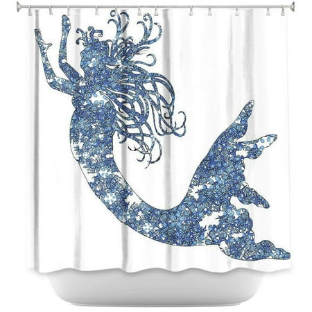 Shower Curtains – DiaNoche Designs – Mermaid Blue RETURNS ARE ACCEPTED. Purchase with confidence that we accept returns. DiaNoche Designs works with artists from around the world to bring unique artistic products to decorate all aspects of your home. Our designer Shower Curtains will be the talk of your guests every visit to your bathroom! Our Shower Curtains are 69 wide x 72 long inches have Sewn reinforced holes for curtain rings (Shower Curtain Rings Not Included). Polyester material does not hold moisture and will not grow mildew. Dye Sublimation printing adheres the ink to the material for long life and durability. Machine Wash upon arrival for maximum softness on cold and dry low. Printed and shipped in the USA!
